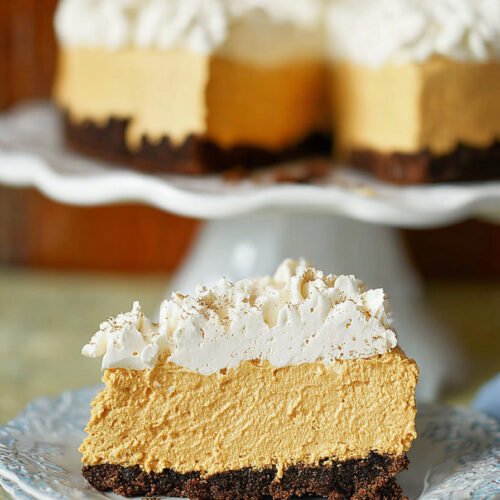 Serving size one slice. Calories moderate for a dessert and will vary with your ingredient choices. Using light cream cheese and real whipped cream can trim the numbers a bit which suits a healthy pumpkin pie recipe path. Expect a balance of carbs for the crust and filling, some fat from cream and butter, and a touch of protein from the dairy. Keep portions sensible and enjoy with coffee or tea.