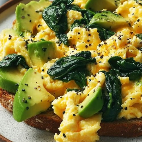This high protein breakfast isn’t just quick. It’s filling enough to carry you past that midmorning slump when the office cookies start whispering your name. It uses simple staples like eggs and bread, with a little twist of creamy avocado and earthy spinach. You don’t need to be a chef. If you can heat a pan and toast bread, you’re golden.