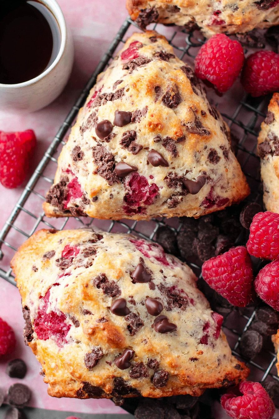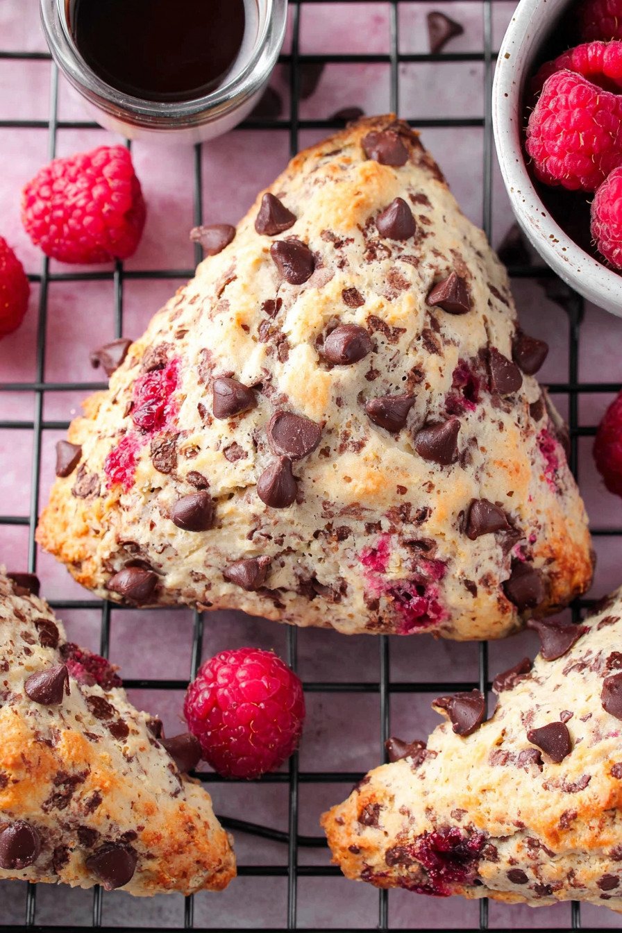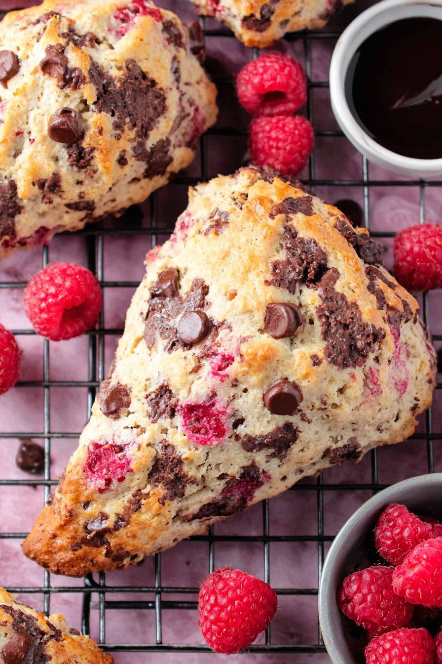 - This raspberry scones recipe combines rich dark chocolate and juicy raspberries for a bakery-style treat with a tender, buttery crumb.