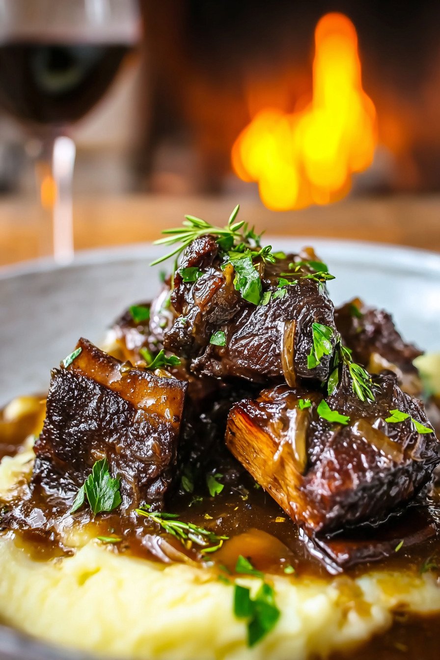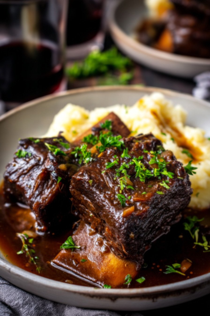 This short ribs recipe is the definition of luxurious comfort food, delivering melt-in-your-mouth beef infused with deep, rich flavors. Whether you’re exploring a smoked beef short ribs recipe or looking for something more classic and slow-cooked, this dish brings restaurant-quality results right to your kitchen. The combination of red wine, aromatics, and slow braising creates a deeply satisfying meal that feels both elegant and hearty. If you’ve ever tried a chinese short ribs recipe or even a flanked short ribs recipe, you know how versatile this cut of meat can be. This version leans into traditional braising techniques, making it ideal for those searching for boneless short ribs recipe ovens or a classic short beef ribs recipe that guarantees tenderness. The slow cooking process allows the beef chuck short ribs recipes to fully develop flavor while becoming incredibly tender. Perfect for special dinners or cozy nights in, this dish elevates the idea of comfort food. Whether you’re comparing it to a smoked beef short ribs recipe or experimenting with different styles like chinese short ribs recipe variations, this short ribs recipe stands out as a timeless favorite that delivers consistent, mouthwatering results.