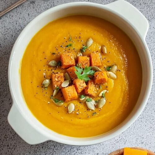 When the weather starts hinting at sweater season, this roasted pumpkin and sweet potato soup feels like a warm hug. The kind that says, ‘Go ahead, grab another blanket.’ I love how roasting the pumpkin and sweet potatoes first deepens their flavor, giving every spoonful a rich, cozy sweetness with just a little smokiness. If you’ve ever thought healthy pumpkin soup recipes taste too plain, this one will surprise you. The texture is creamy but not heavy, and it tastes like autumn packed itself into your bowl. I made this one weekend when I had a few extra pumpkins staring at me from the counter, and let’s just say they didn’t go to waste. This soup fits beautifully into your list of easy pumpkin recipes — it’s hearty enough for lunch, elegant enough for dinner, and it smells so good that everyone will wander into the kitchen asking, ‘What’s cooking?’ That’s my favorite part about making savory pumpkin recipes like this. The aroma feels like home.