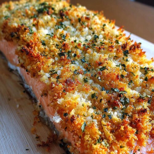 I make this on busy nights when I want dinner to behave. The salmon turns tender. The top turns crisp and nutty from a shower of parmesan and crumbs. A squeeze of lemon wakes the whole pan. I call it weeknight calm with restaurant flair. We start with a fresh fillet and pat it dry. Olive oil kisses the surface, then a quick mix goes on top. Parmesan, panko, garlic, parsley, salt, and pepper. I press it with my palm so the coat sticks. The oven does the work. In about fifteen minutes the crust goes golden and the fish flakes at a touch. Friends ask for more baked salmon recipes and I hand them this first. It fits so many salmon recipes cravings. Think crusted baked salmon that stays juicy. Think parmesan crusted salmon with a crisp bite. It tastes like the best crispy salmon recipe from a bistro, yet it is easy home cooking. For folks who love gourmet salmon dishes and parmesan seafood recipes, this pan always wins.