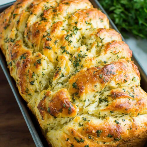 We bake this loaf when the day asks for easy comfort. The batter comes together fast and the kitchen fills with garlic and cheese. The crumb stays soft and springy. The crust turns gently golden. Slices hold up to toasting and to a packed lunch. This is a steady sandwich bread recipe that we can trust.