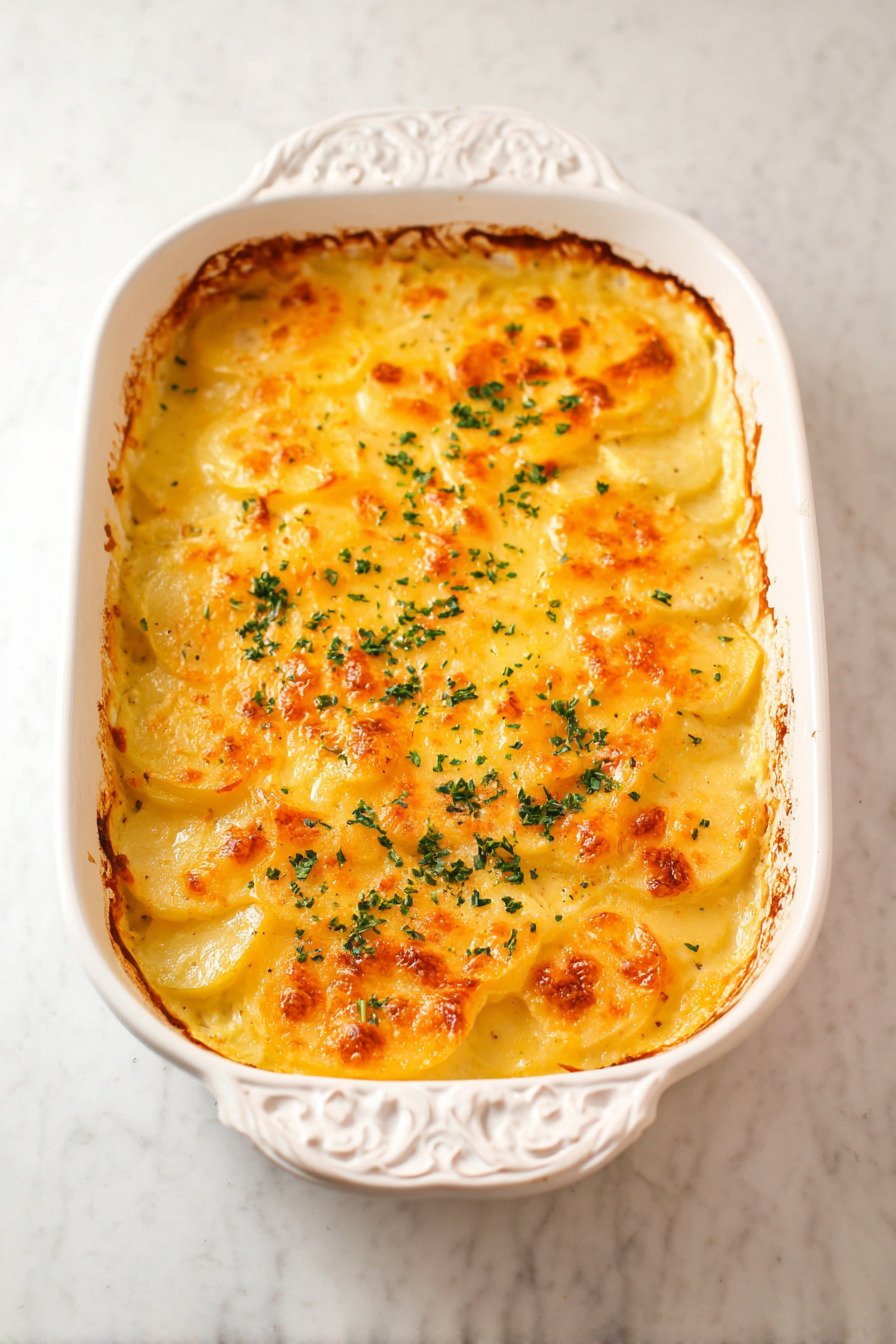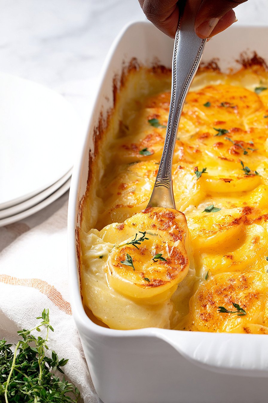 If you’re feeling adventurous, try adding some fresh herbs like thyme or rosemary to the layers of potatoes. It adds an aromatic touch that takes this dish to the next level!