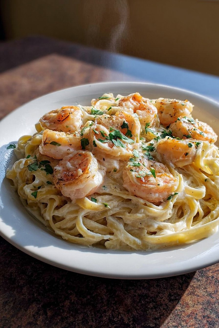 One serving brings balanced richness and clean protein. Shrimp offers lean strength and the sauce brings comfort.