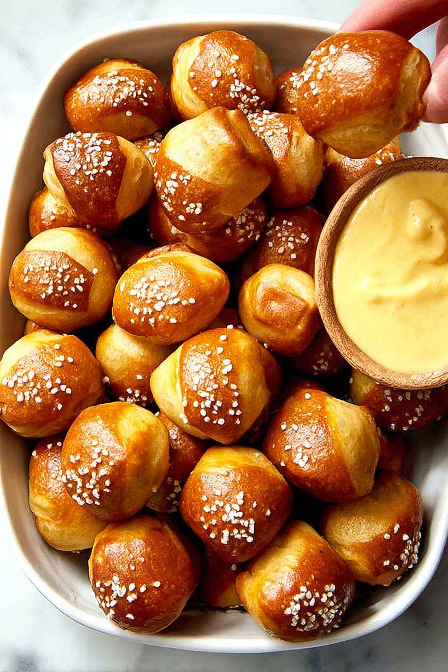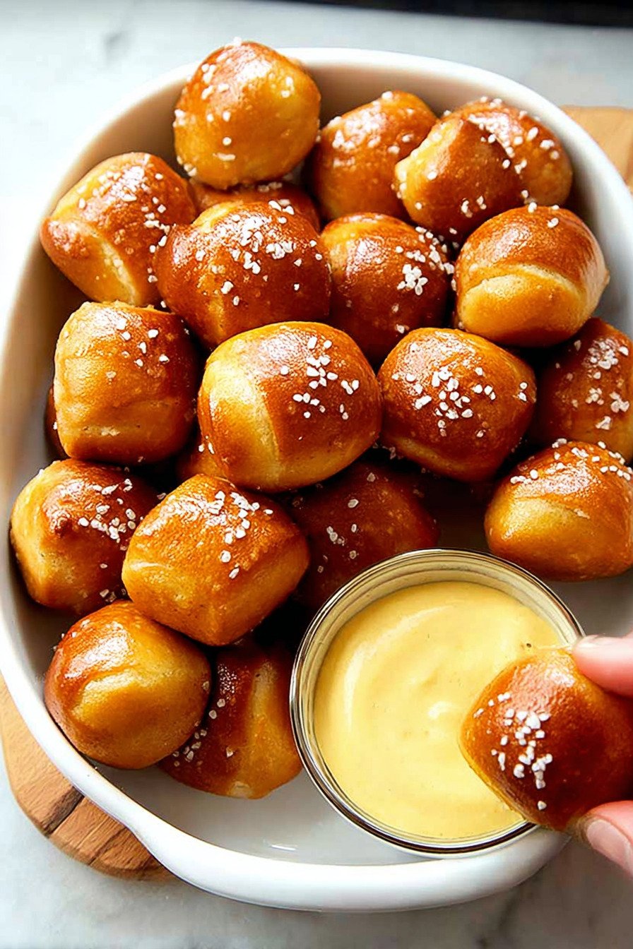 Do not skip the baking soda bath. That quick boil gives the bites their deep color and firm outer layer. Without it, they taste more like bread than pretzels.