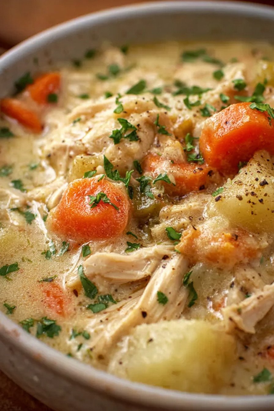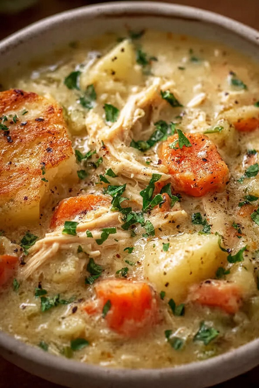 The texture sits silky yet sturdy. Shredded chicken gives body. Tiny cubes of potato hold shape. Peas pop sweet. The broth turns creamy with a gentle flour and milk duo. No heavy cream needed. We stay light and still feel satisfied.