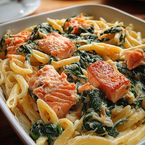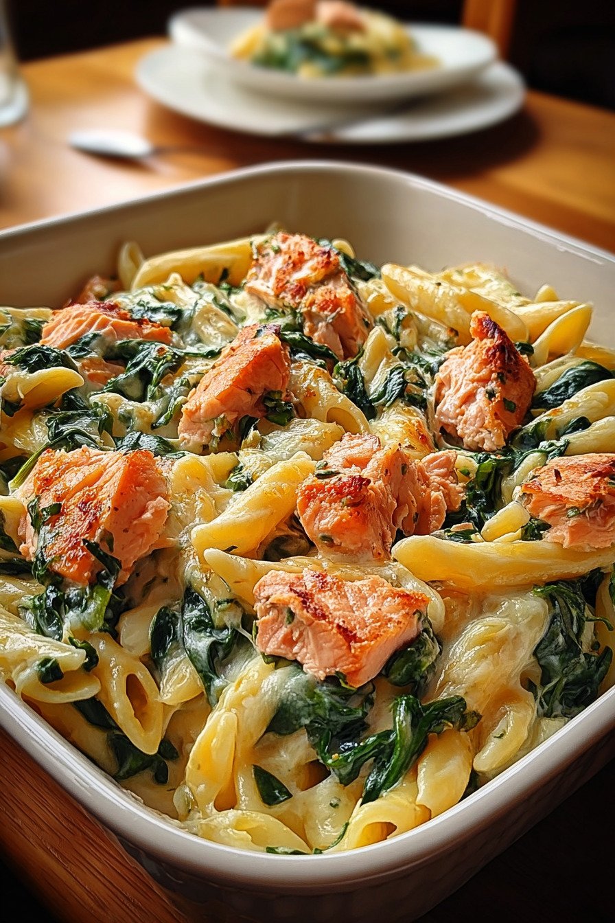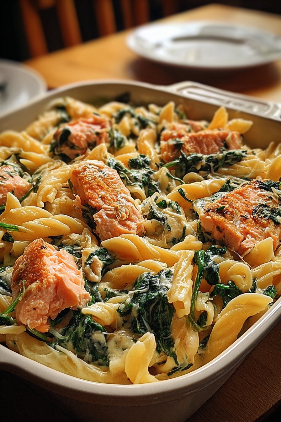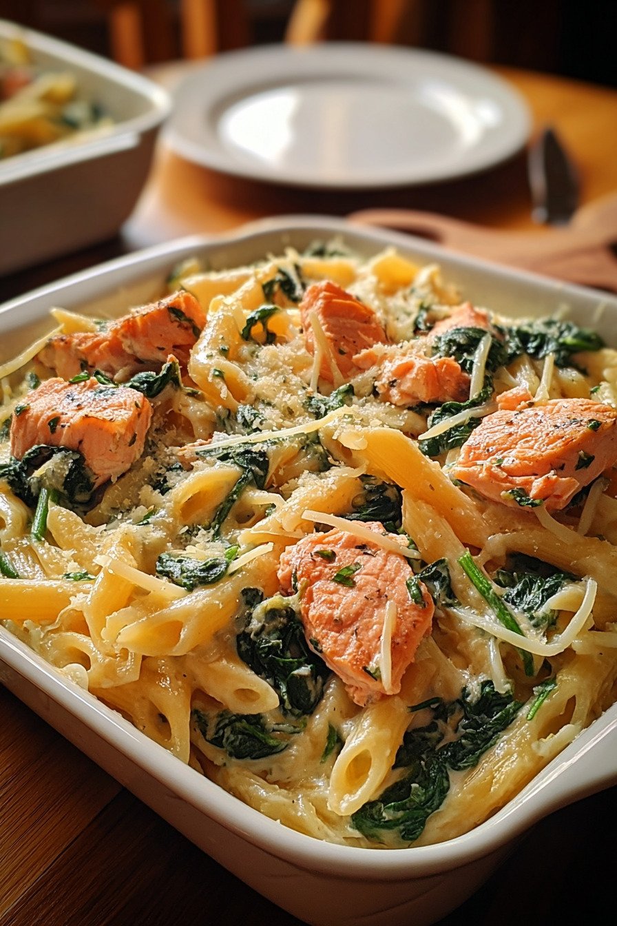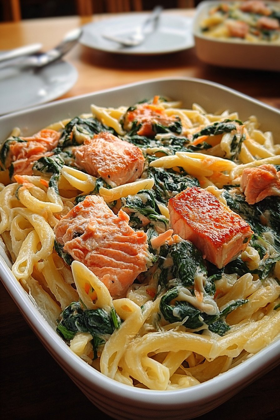 I cook a lot at home and this dish sits high on my list of spinach dinner recipes. The bowl feels warm and filling yet the greens keep the meal light. Pasta holds the creamy sauce. Salmon flakes into soft pieces that melt into each bite. It works for a quiet dinner or a casual meal with friends.