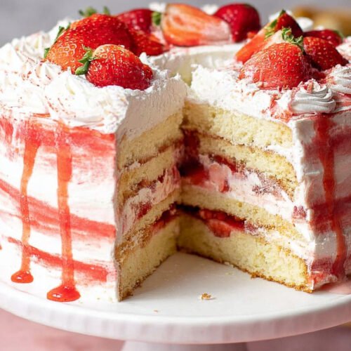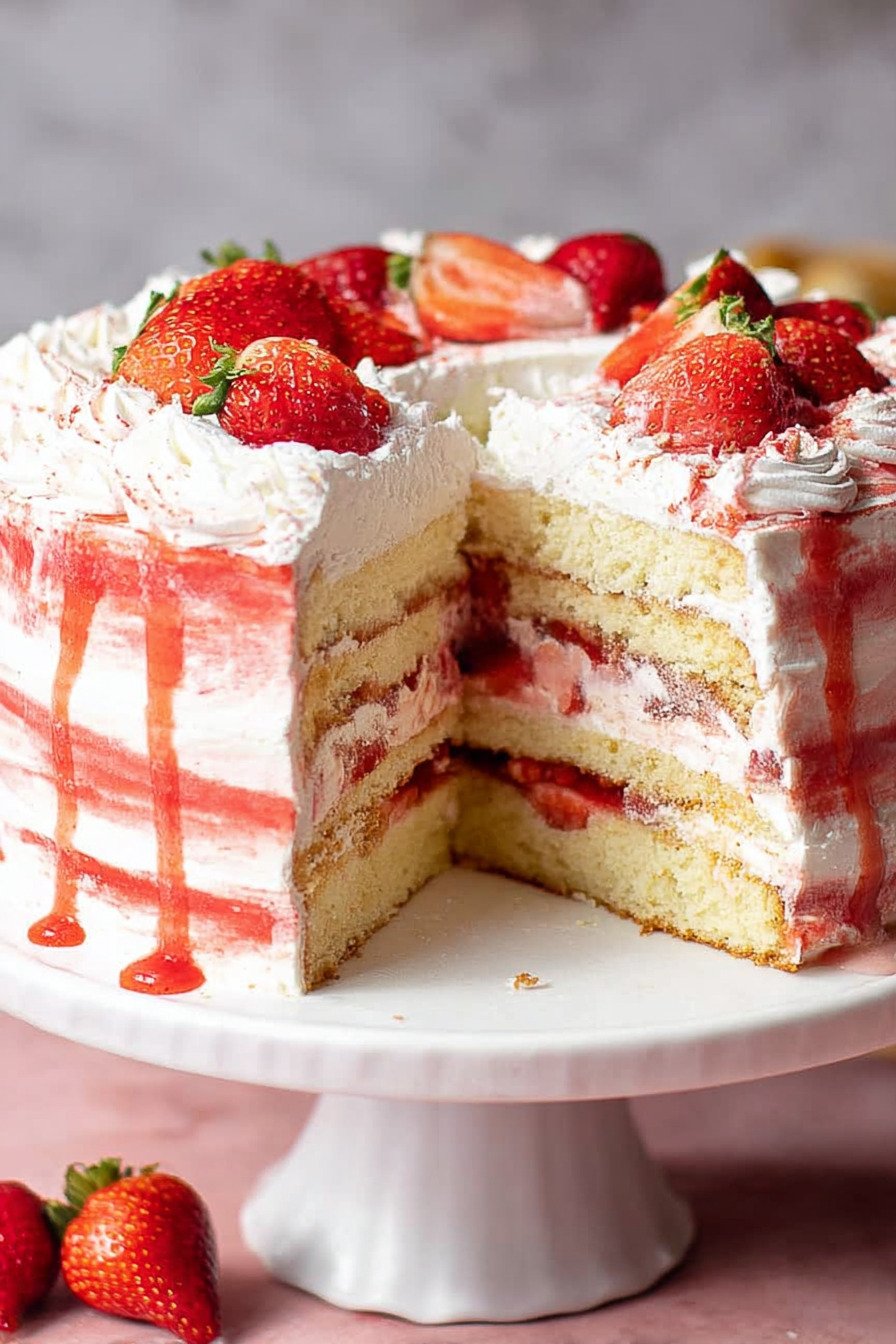 Strawberry Cake Layered Shortcake with Fresh Strawberries