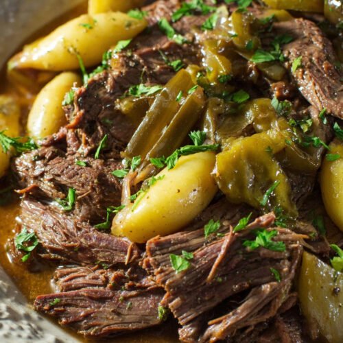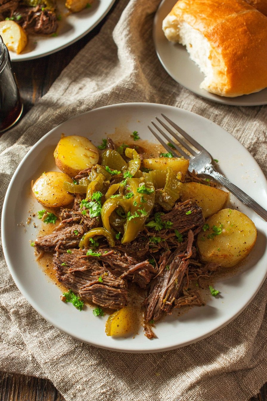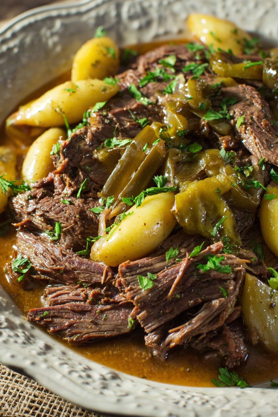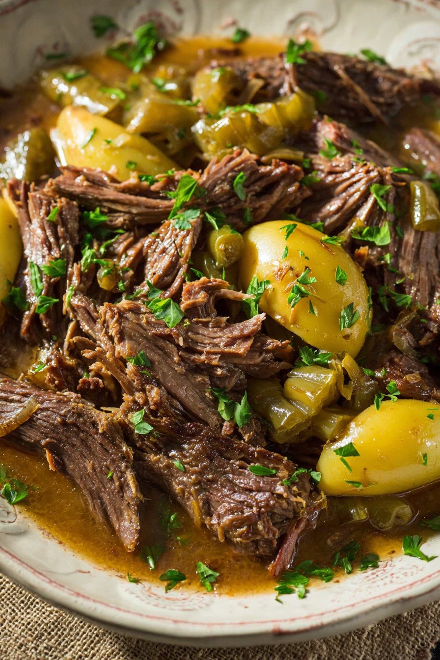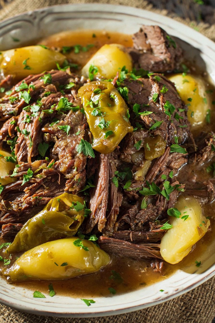 Pepperoncini Peppers These add a subtle tang and mild heat, balancing the richness of the roast perfectly.