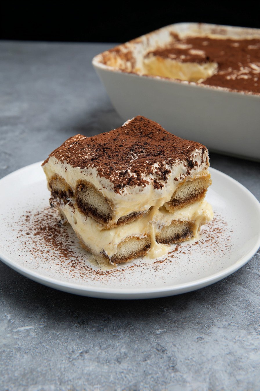 The texture lands between airy and creamy. The coffee soaks the ladyfingers just enough for a tender bite. I use classic tiramisu flavor with a light hand on sugar. The chill time sets the dessert so each forkful feels cool and smooth.