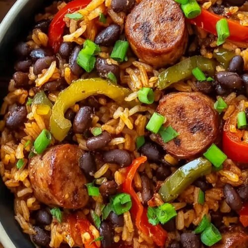 Spoon the sausage and bean mixture over the rice and sprinkle with parsley or cilantro if you're feeling fancy.