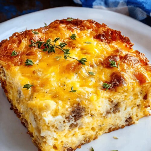 Bake uncovered for 45–50 minutes, or until the eggs are set and the top is golden brown.