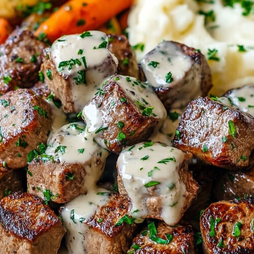 Add the steak cubes in a single layer. Sear on each side for about 2 minutes, until golden brown.