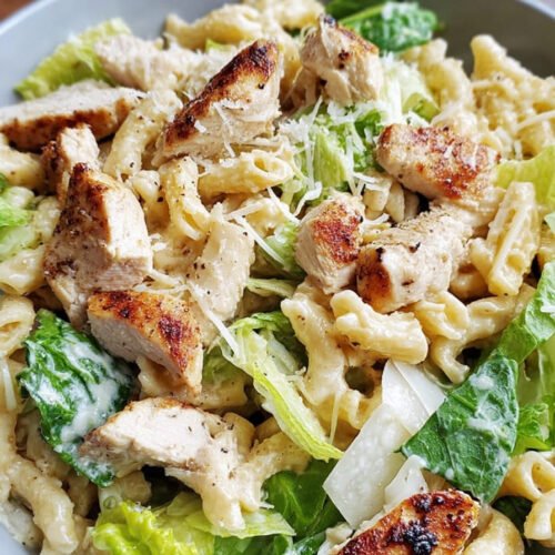 Pour in Caesar dressing and toss until everything is coated evenly.