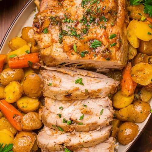 Slice the pork and serve it alongside the vegetables, drizzled with that luscious sauce.