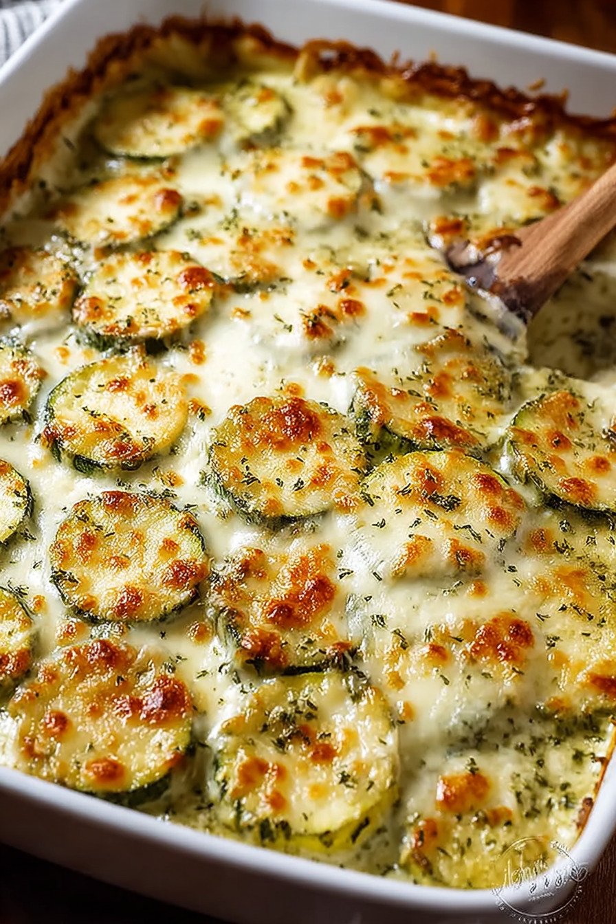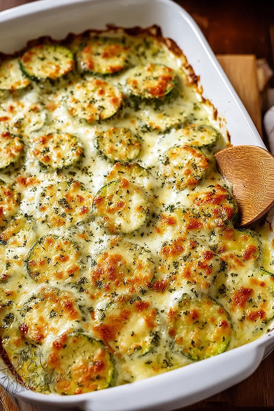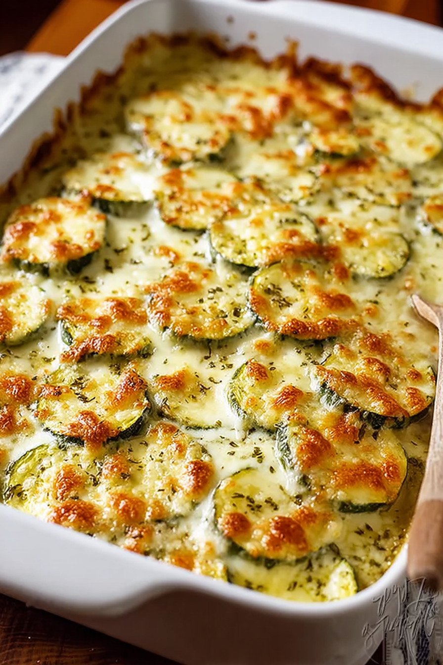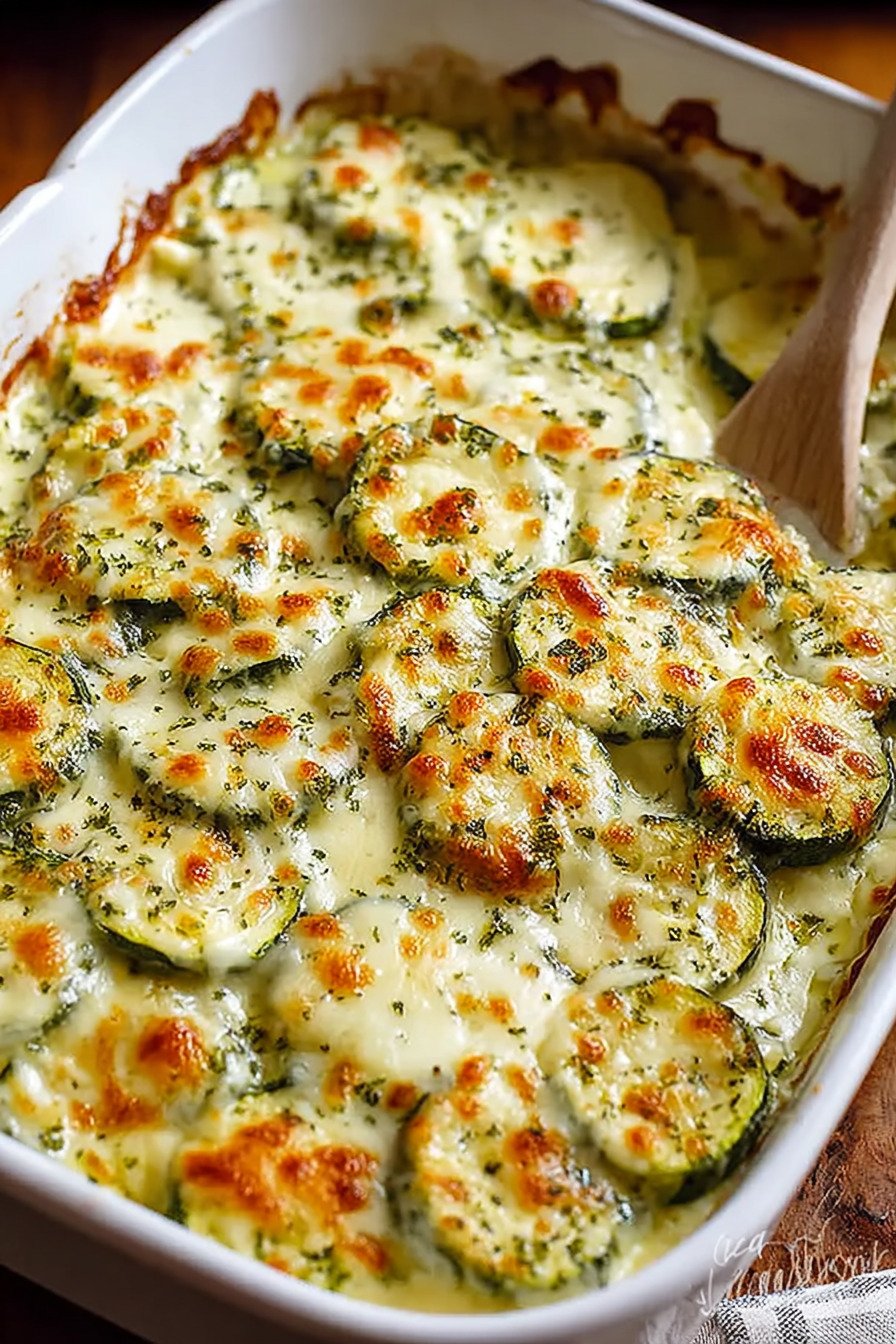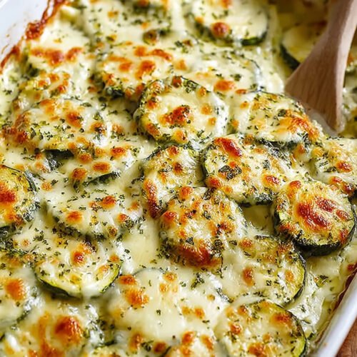 Use a square dish for taller layers or a wider dish for more crust. Both work. Think about your table and pick what fits. Zucchini dishes love a bit of edge so do not crowd the pan.
