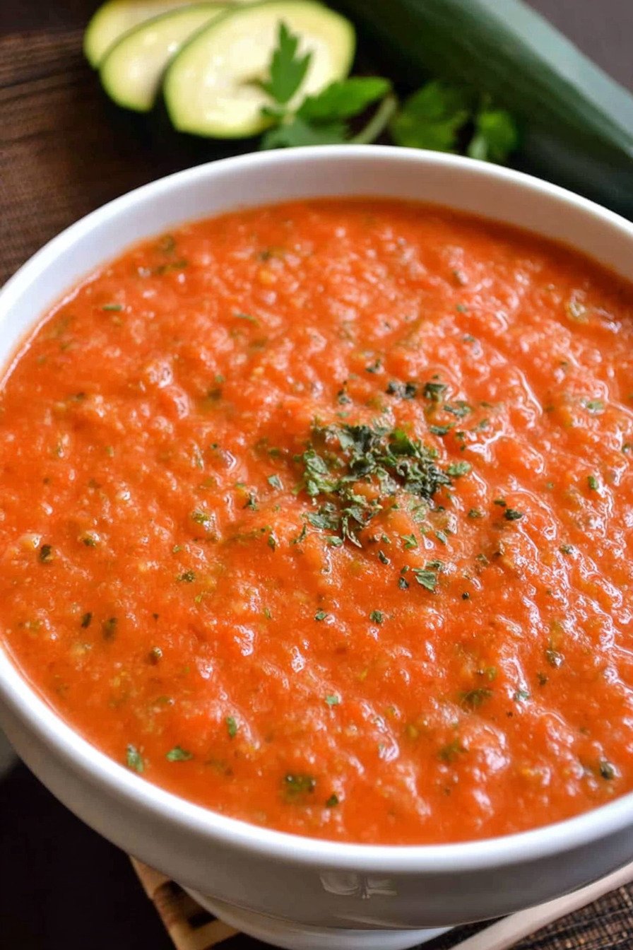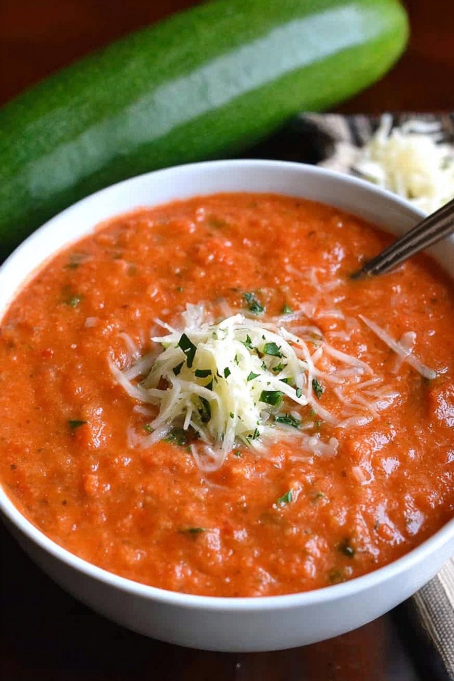 This recipe from Elena at Elena Cooks brings comfort and balance into one bowl. You get fresh zucchini, ripe tomatoes, garlic, and broth blended into a smooth, light meal that fits real life. It works for busy weeks, meal prep plans, and anyone who wants flavor without heavy food.
